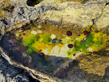 Bivalves (such clams and mussels) are filter feeders. Identifiable by their two sides (valves) connected by a hinge, many bivalves attach themselves to rocks with strong threads called byssus threads. Other species of bivalves such as the sand gaper or the razor calm (locally known as spoots) often live in large communities burrowed into the sands or silts. From their holdfasts or burrows, these species can filter the sea water through their valves and absorbs nutrients as well as consuming small living things like planktons.