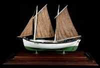 Boat model: 'Yole Mary - K42' with crew of two (one holding a creel), in case. Made by Mr T. Maxwell, Kirkwall.