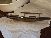 Model of an outrigger or catamaran boat from the South Sea Islands.
