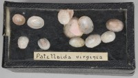 Class: Gastropoda. 12 specimens. Small, asymmetrically conical. Ranging in colour from whitish yellow, to the pale pink of the striped bands which are still visible on a number of the specimens.