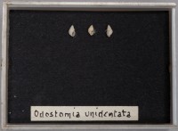 Class: Gastropoda. 2 specimens. Very small, pale grey and conical with convex sides. Normally ridged, but these specimens have been worn smooth.