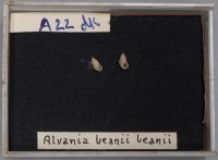 Class: Gastropoda. 2 specimens. Pale grey, very small and delicate. Made up of 4 and a half whorls. Found around red algae and in pools with corallines.