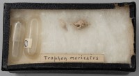 Class: Gastropoda. 4 specimens. 2 of which are contained within their own capsules. White and conical with defined whorls and crosshatched ridging.