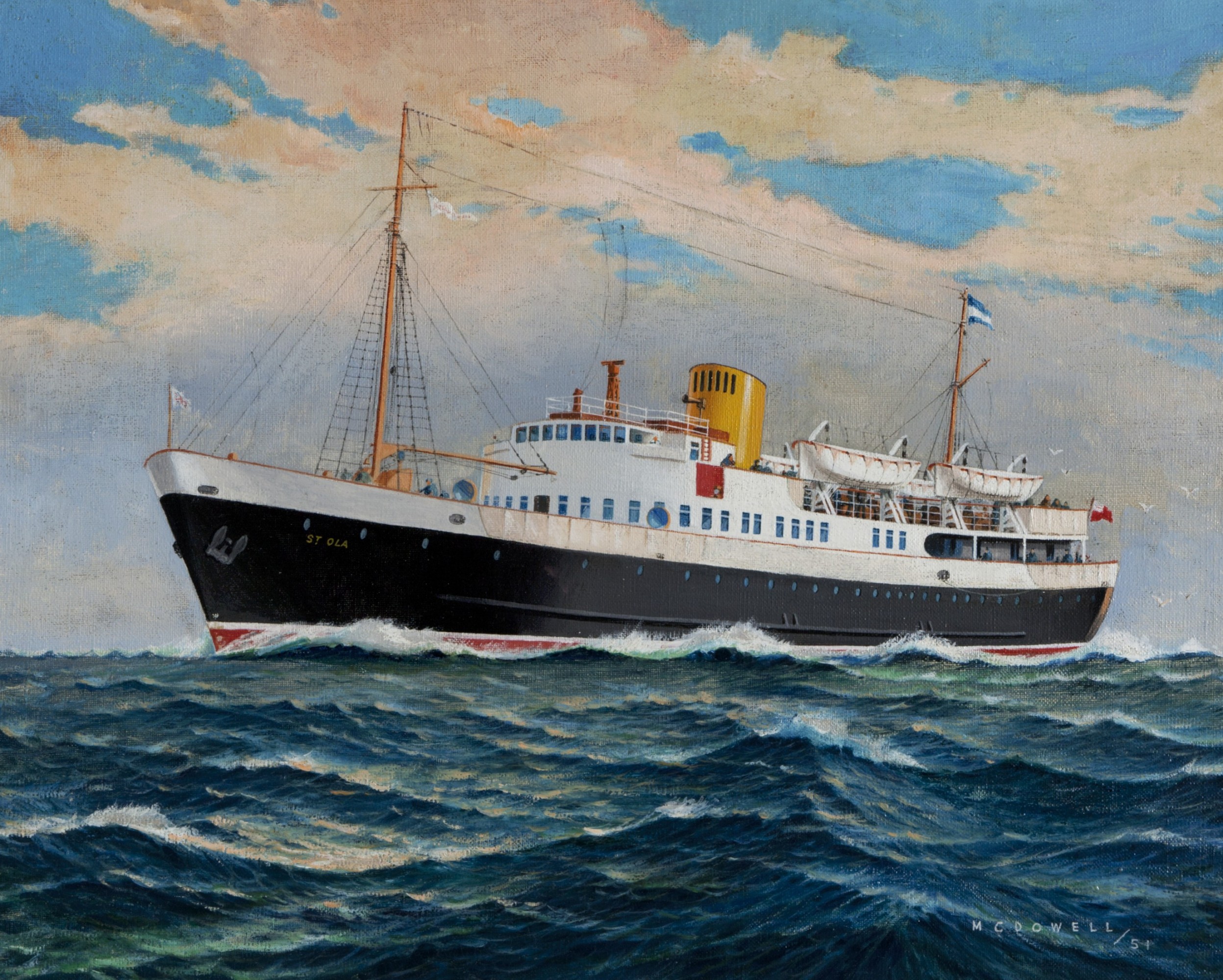 Oil painting of the St Ola II by Daniel Fergussen McDowell 1951.