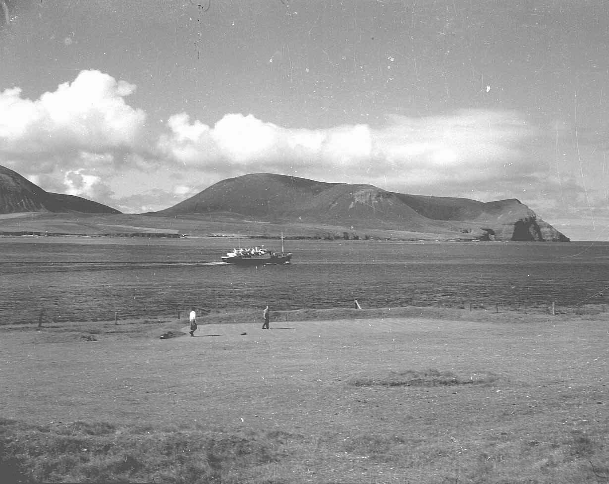 The 'St. Ola' in Hoy Sound, seen from Stromness Golf Course, date unknown.
