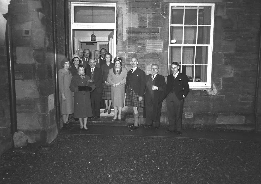 Group present at Court of Enquiry into the extension of the boundary of Stromness, at Stromness, 11 December 1962, with Sheriff Harald Leslie in the Chair.