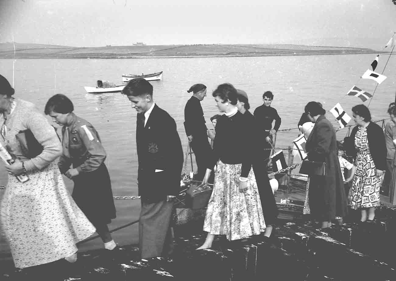 The naming ceremony for the Stromness Lifeboat, NLB Archibald and Alexander M. Paterson, on 25/8/1955. See Orcadian 1/9/1955, page 3. After the ceremony members of the public were taken for a trip around the bay.