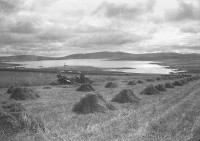 Harvesting with a Tractor and Binder, Voy, Sandwick.Stenness Loch is in the background. Date unknown.