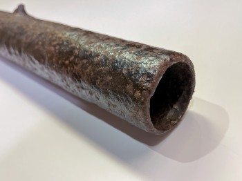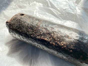 Harpoon cannon or gun from Whaling ship 'Wildfire' of Dundee. This object was taken back to Orkney by James Wilson of Graemsay, who had signed on the Truelove of Hull in 1866 aged fifteen. By this time whale numbers had been greatly reduced by overhunting, so they only caught one whale. The following year he joined the Dundee whaler, SS Wildfire, but things were no better, in fact it was a record low, with eleven ships catching only two whales. The next season, 1868, James signed back on the SS Wildfire, along with his brother William and his cousin, James Skinner. This year the hunting was better, but the conditions were worse. Six ships were trapped in the ice, expecting to be crushed to pieces at any moment. Eventually the ice let go its grip and the badly damaged ship managed to reach Disko Island, where it had to be abandoned. The three Graemsay men were taken onboard another ship bound for Shetland, where they had to make their own way home. But James Skinner was in full possession of that Orcadian mind-set of ‘that’ll come in handy someday’, and he took the harpoon cannon of the Wildfire on his shoulder and carried it back home to Graemsay where he used it as a boat mooring.