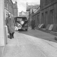 The Queen Mother arriving at Kirkwall Airport during a visit to open the King George V Playing Fields at Pickaquoy, 9th August 1956.