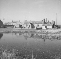 Crew of the sailing cutter 'Maid Nellie' outside the Deep Sea Fishermen's Mission, 1959: L-R: Leslie Shephard, Harbour Master, Jon Field & David Regan.