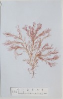 Pressed seaweed specimen. Large red flower head. Rev John H Pollexfen Collection.