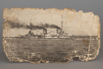 One of two postcards depicting a battlecruiser, found on a salvaged German ship in Scapa Flow (water damage).
