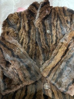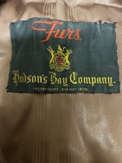 Labelled "Furs - Hudson's Bay Company" The coat originally belonged to Mrs Baxter of Fochabers (of Baxter's soup). Given to donor's mother Bella Horne of Stronsay by Mrs Baxter's sister Mrs Robertson of Burghhead. Brown fur three-quarter coat.