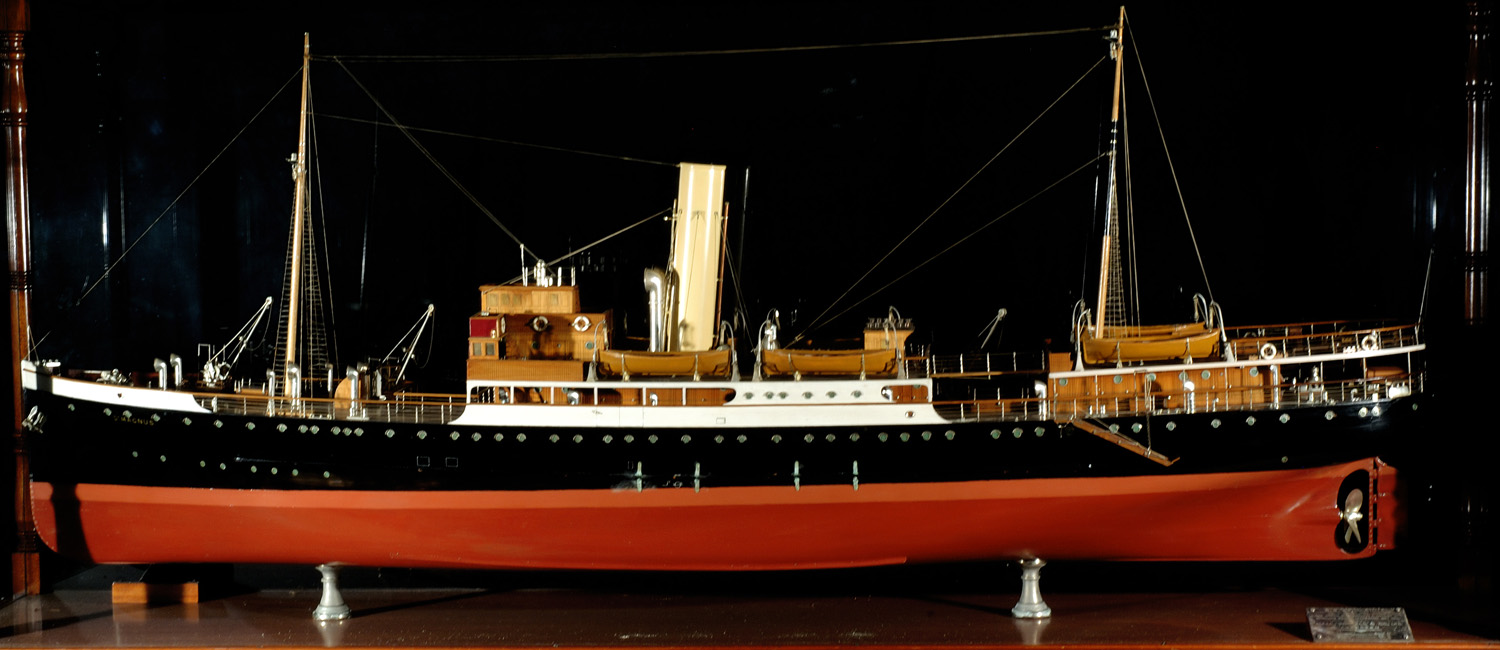 Builder's model in a case. Model of SS St. Magnus which was built for the North of Scotland Orkney and Shetland Steam Navigation Co in 1907 by Hall Russell & Co Ltd, Aberdeen.