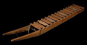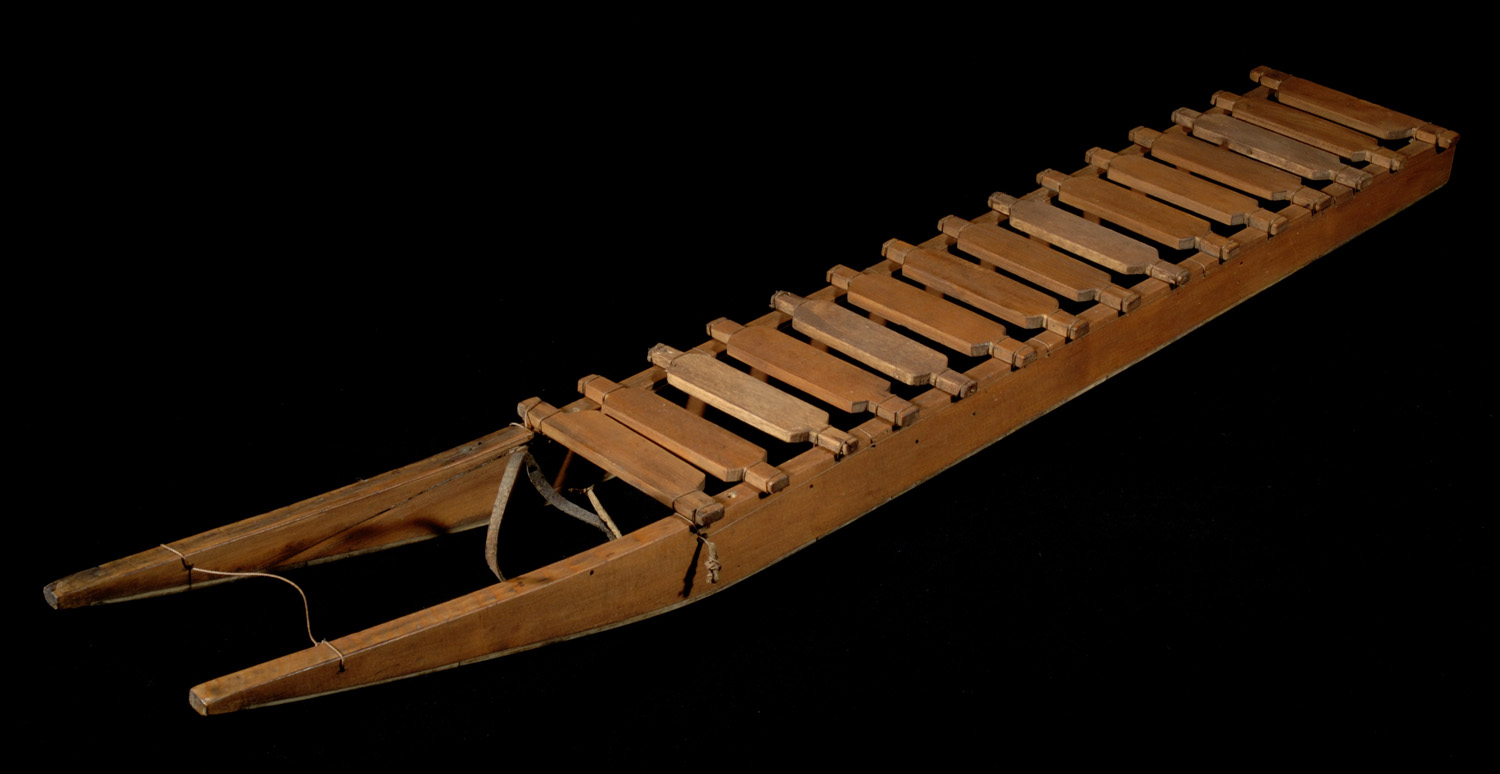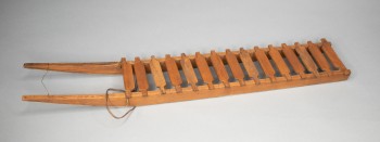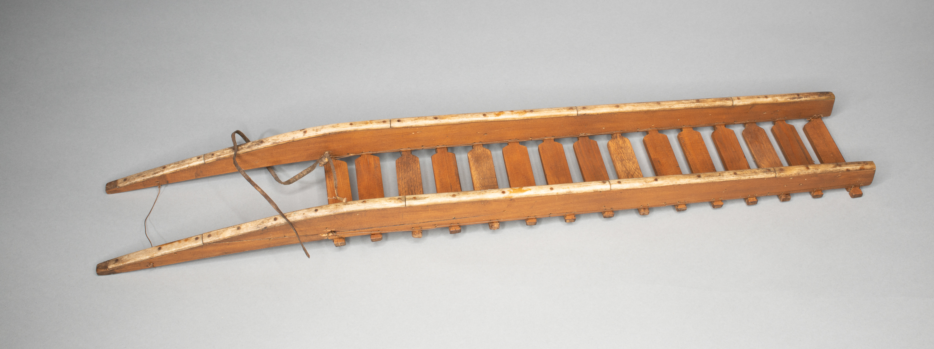 Model husky sled. Wood, bone and cord. A toy brought from Canada at the turn of the 19th century by the Will sisters, who lived with their aunt Swanney in Stronsay after the death of their Inuit mother.