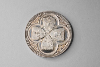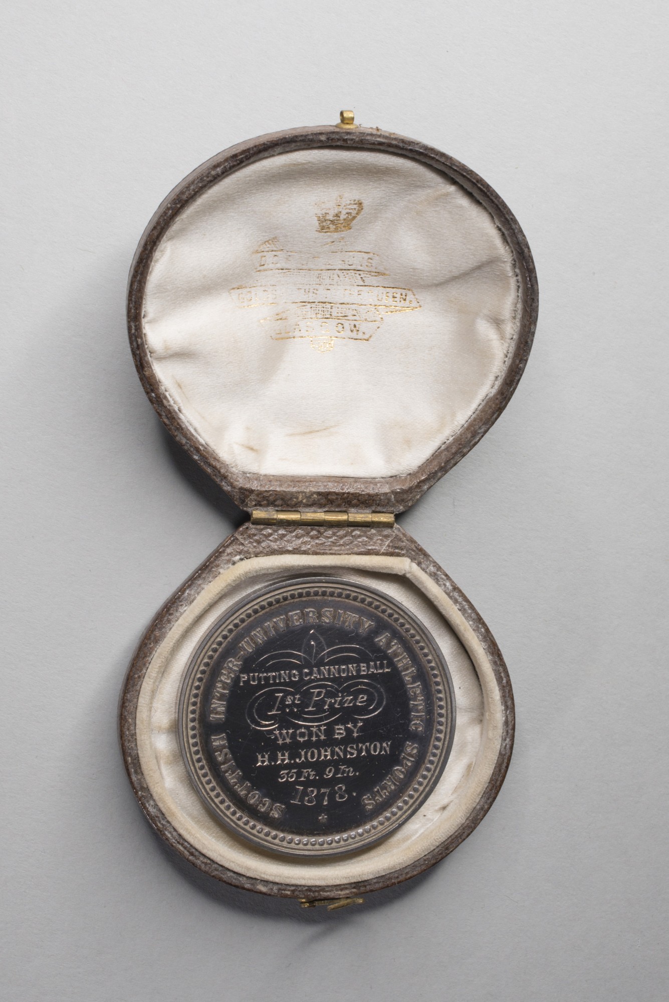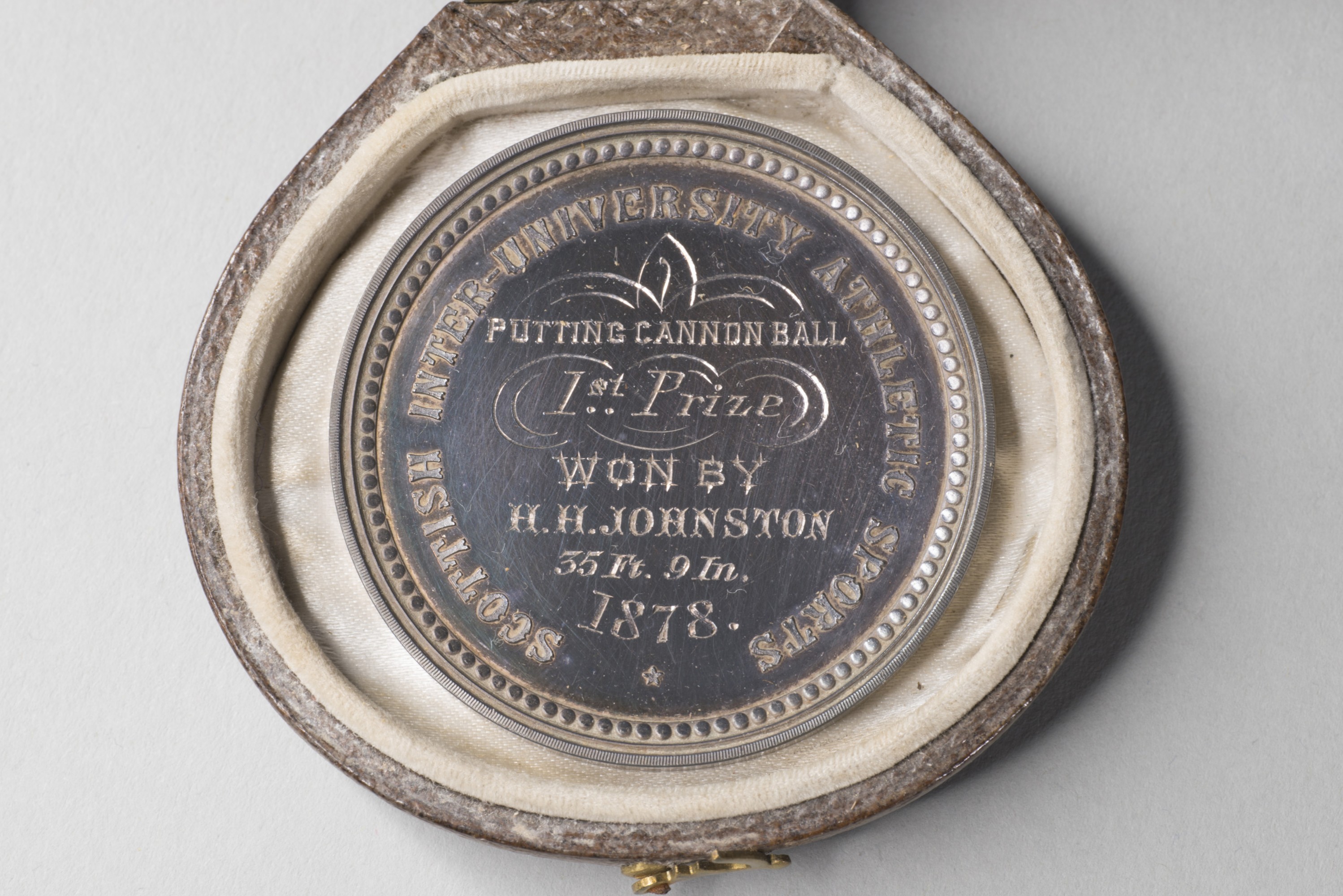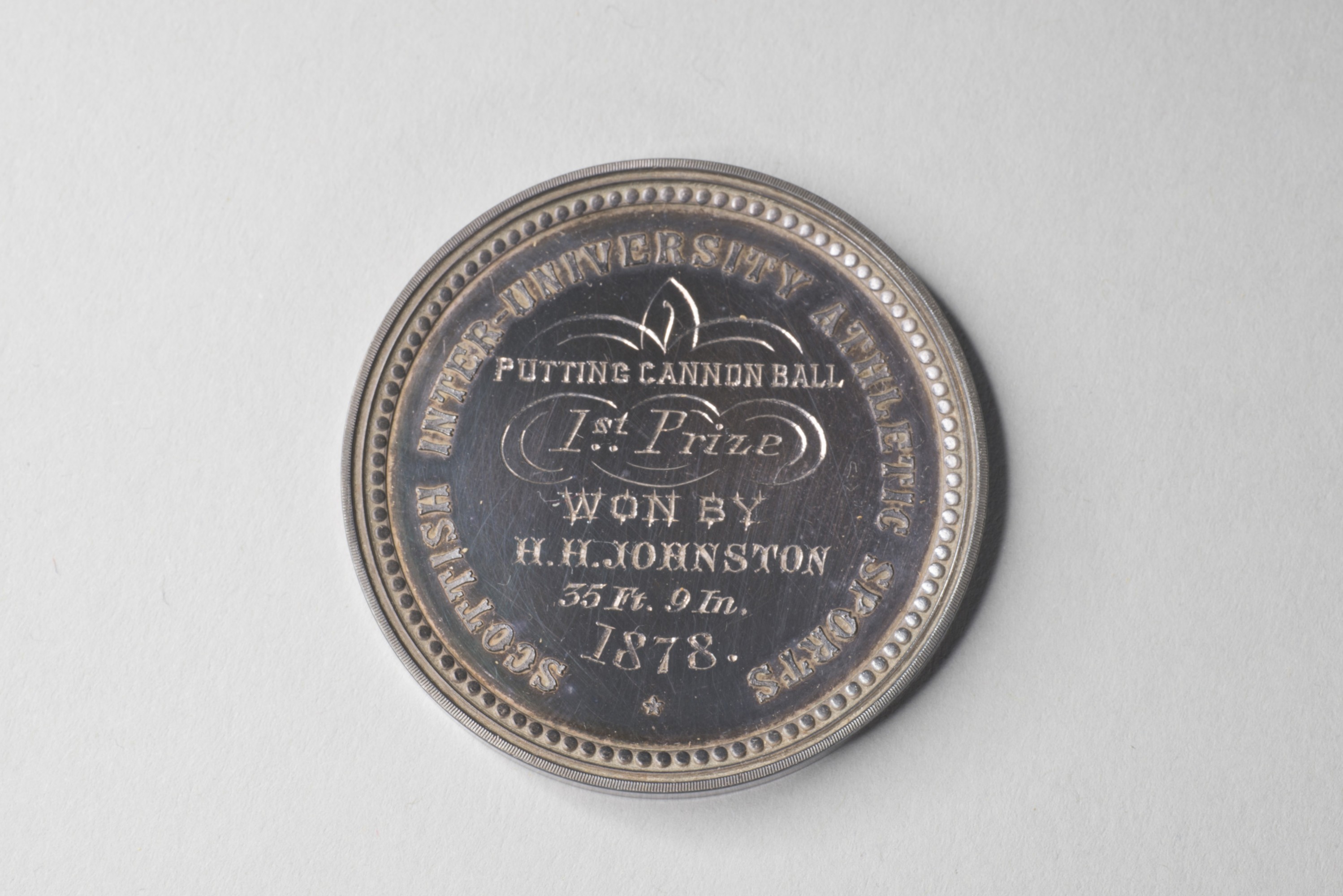 Medal, Edinburgh University (sports). Putting cannon ball. H. H. Johnston 1878.