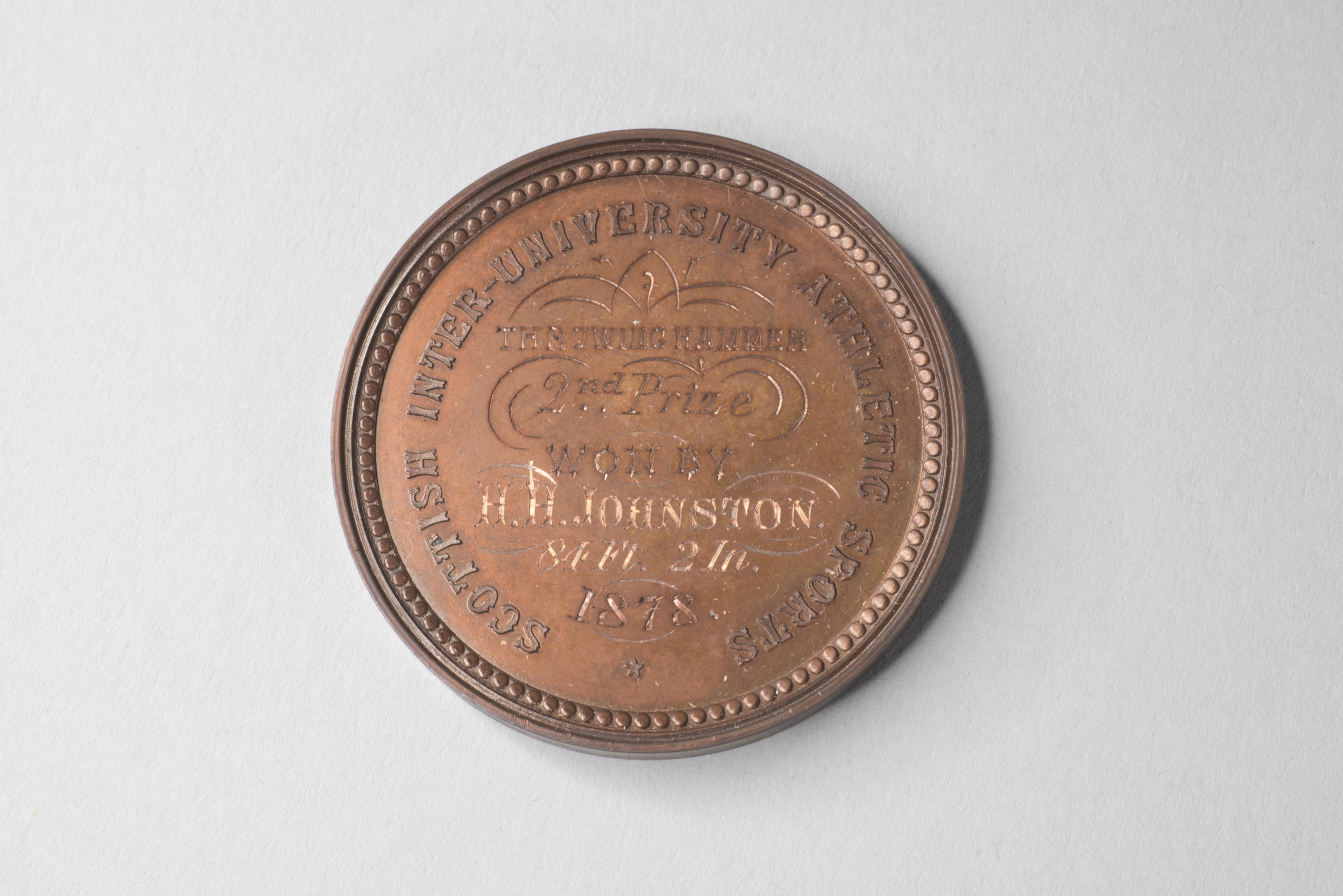 Medal, Edinburgh University (sports). Throwing Hammer 2nd Prize. H. H. Johnston 1878.