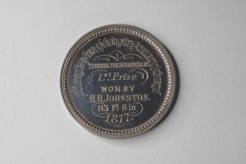 Medal, Edinburgh University (sports). Throwing the Hammer 1877. H. H. Johnston.