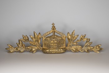 Plaque: German Imperial Crown with laurel leaves, brass. From German Fleet in Scapa Flow.