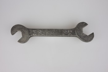 Spanner from German Fleet. SMS Kaiser stamped on one side. 24 and 9/16 printed on both ends. Other side, VC OEL PUMP. F. DISEL MOTOR.