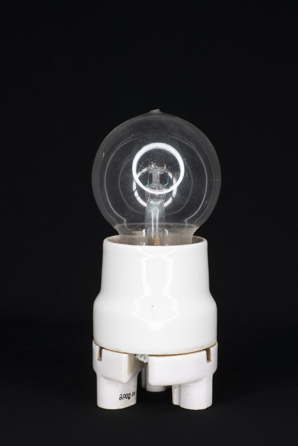 Bulb and electric fitting. "Kaiserliche Marine" etched on glass. Bulb on porcelain fitting. There is a small hole at tip of bulb glass.