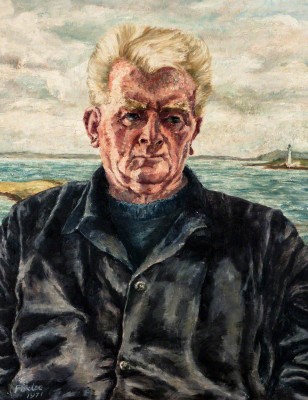 Oil painting - portrait of Captain John Hourie of Bremner & Co (South Isles ferry and freight service 1938-1961). Painted by Sylvia Foxlee (Dennison) titled 'Big John' and dated 1971.
