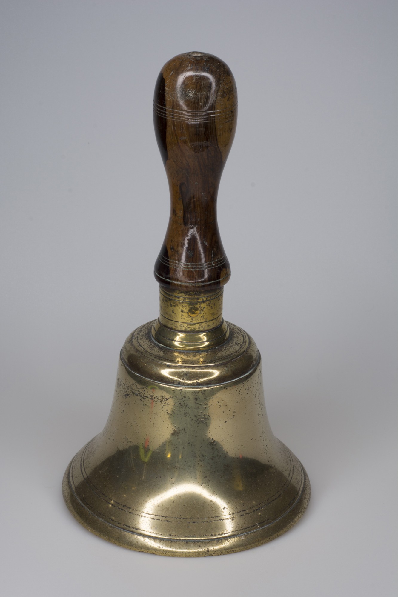 Hand bell from original Orcadia 1868-1931. Brass bell with wooden handle.