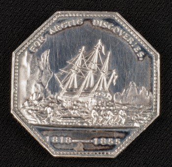 1st Arctic Medal "For Arctic Discoveries 1811-1855. Octagonal silver, missing ribbon and hanger. Paper on side 'F A M'. Believed to be Sir John Franklin's Arctic Medal.