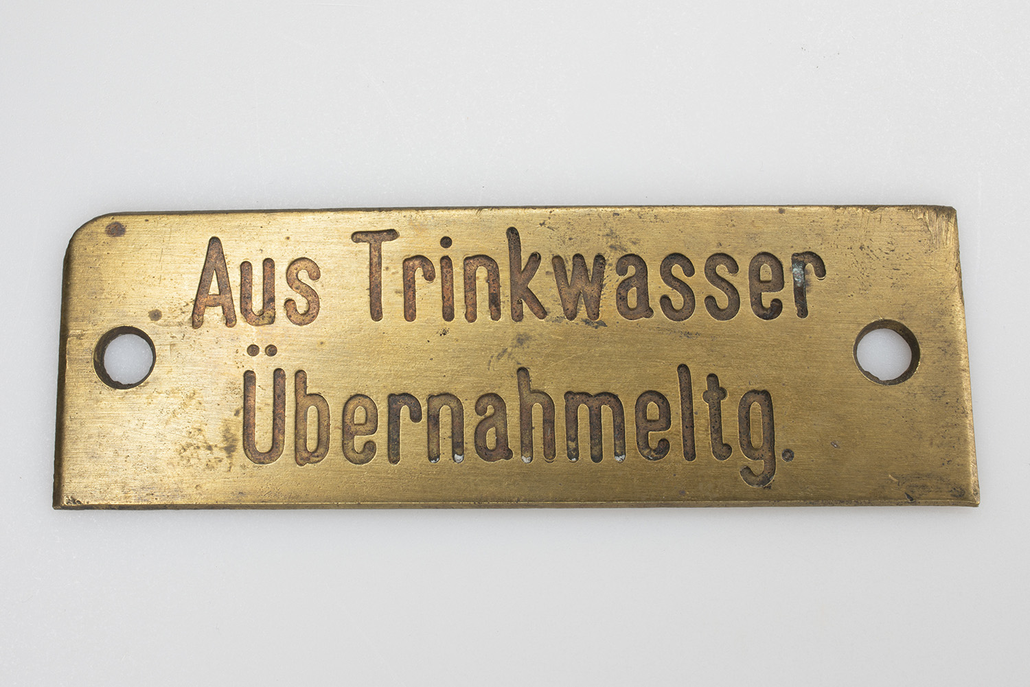 Brass plaque from German Fleet "Aus Trinkwasser".