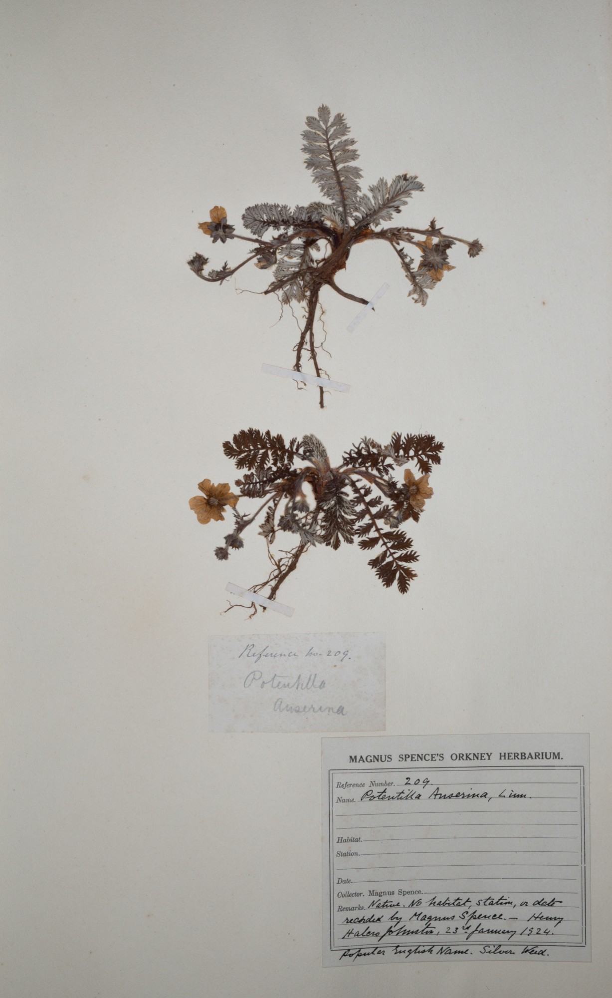 Herbarium sheet reference 209 Potentilla anserina L. Potentilla anserina L. Silverweed.