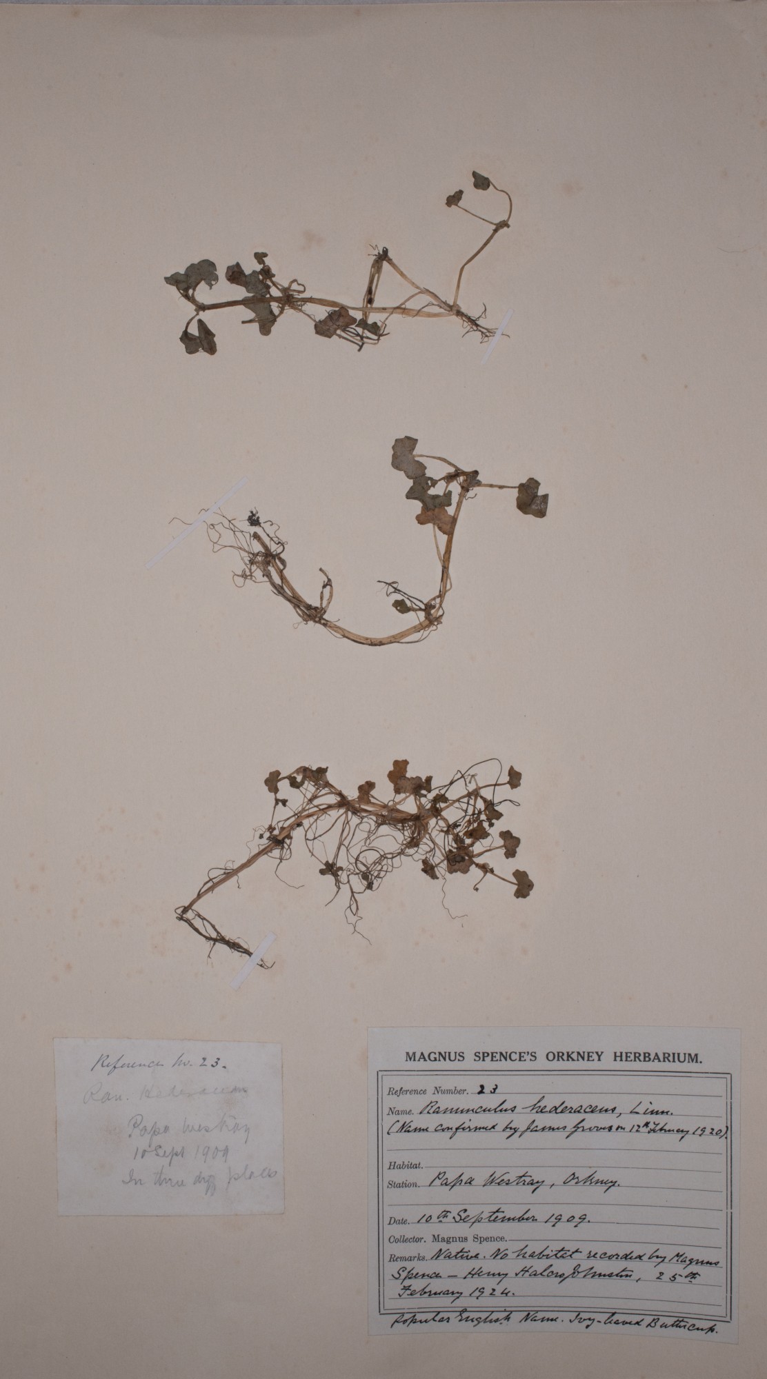 Herbarium sheet reference 23 Ranunculus hederaceus L. Ranunculus hederaceus L. Ivy-leaved Water-crowfoot.