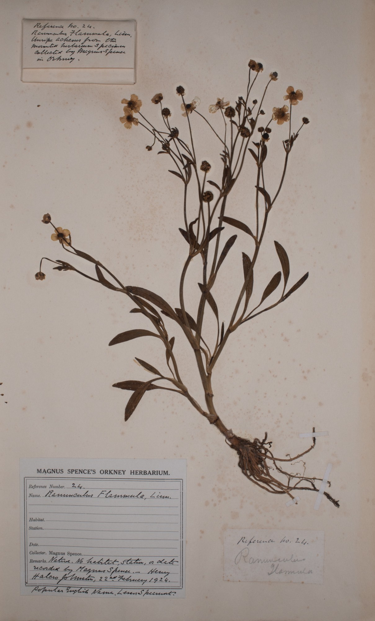 Herbarium sheet reference 24 Ranunculus flammula L. Ranunculus flammula L. Lesser Spearwort.