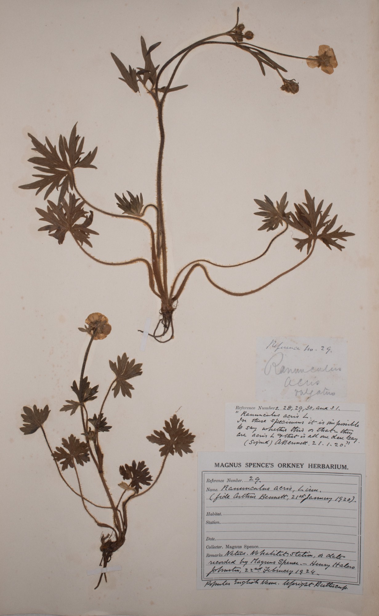 Herbarium sheet reference 28 Ranunculus acris L. Ranunculus acris L. Meadow Buttercup.