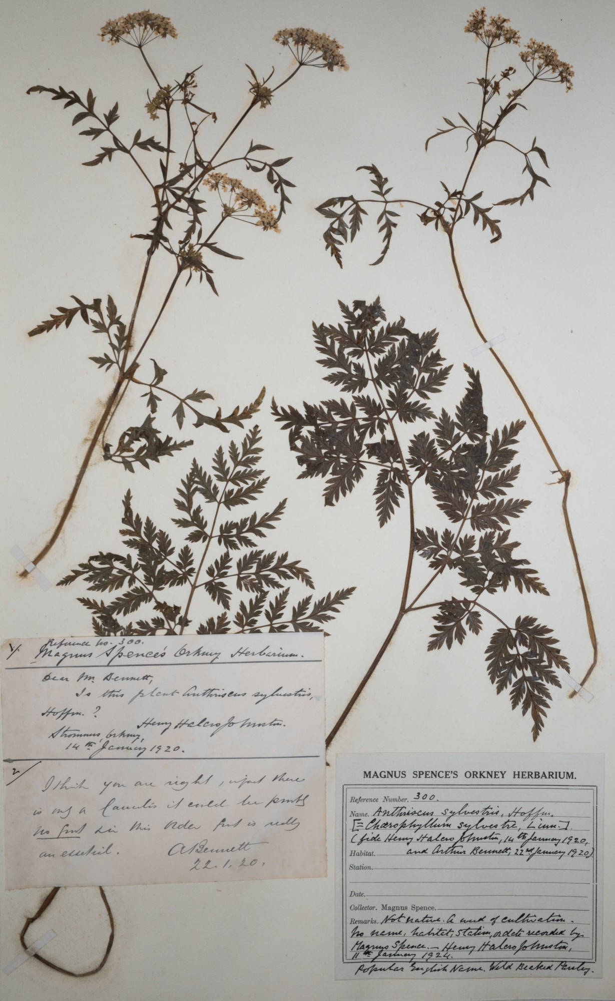 Herbarium sheet reference 300 Anthriscus sylvestris Hoffm. Anthriscus sylvestris L. Cow Parsley.