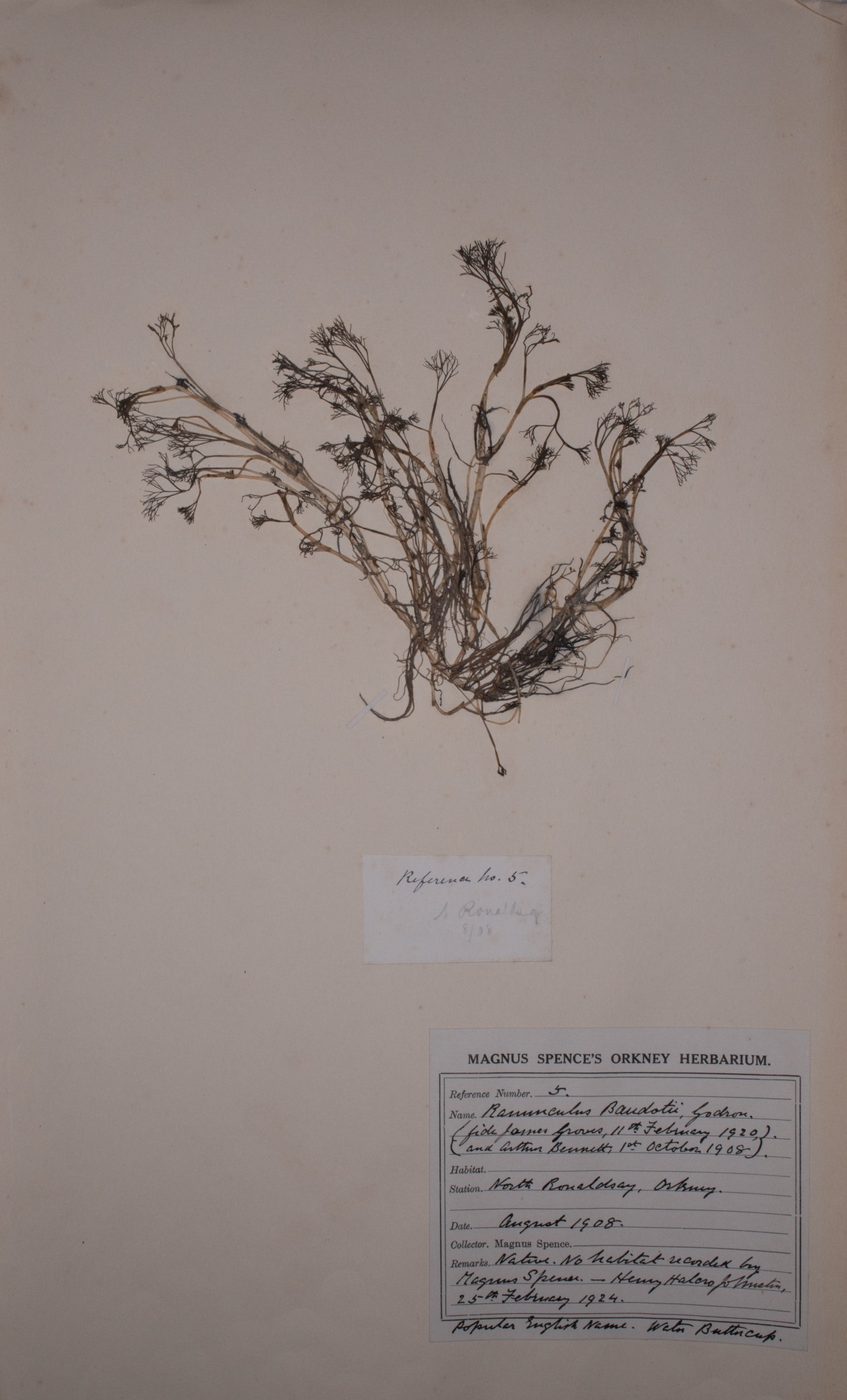 Herbarium sheet reference 5 Ranunculus baudotii Godron Ranunculus baudotii Godr. Brackish Water-crowfoot.