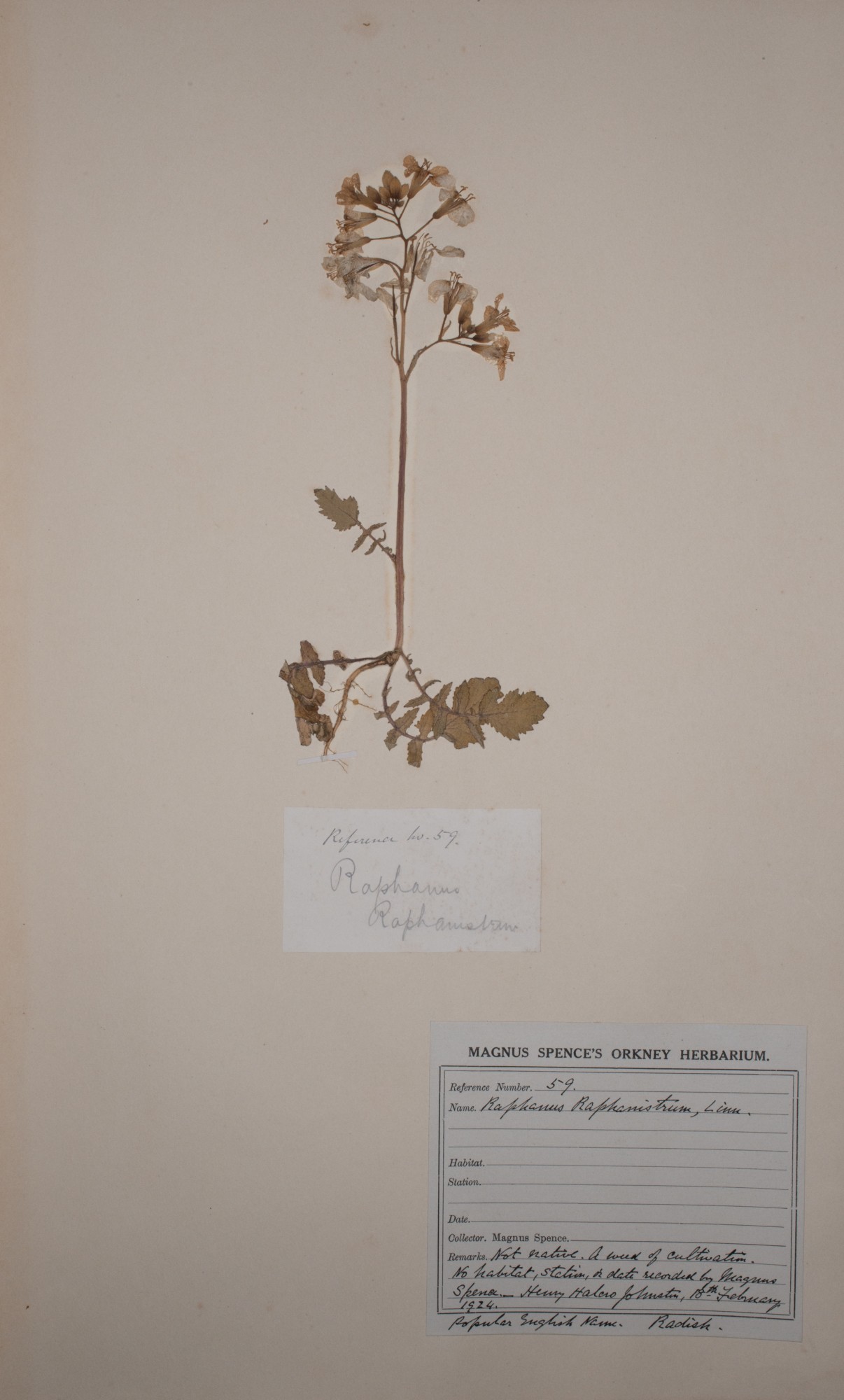 Herbarium sheet reference 59 Raphanus raphanistrum L. Raphanus raphanistrum L. Runch, Wild Radish.