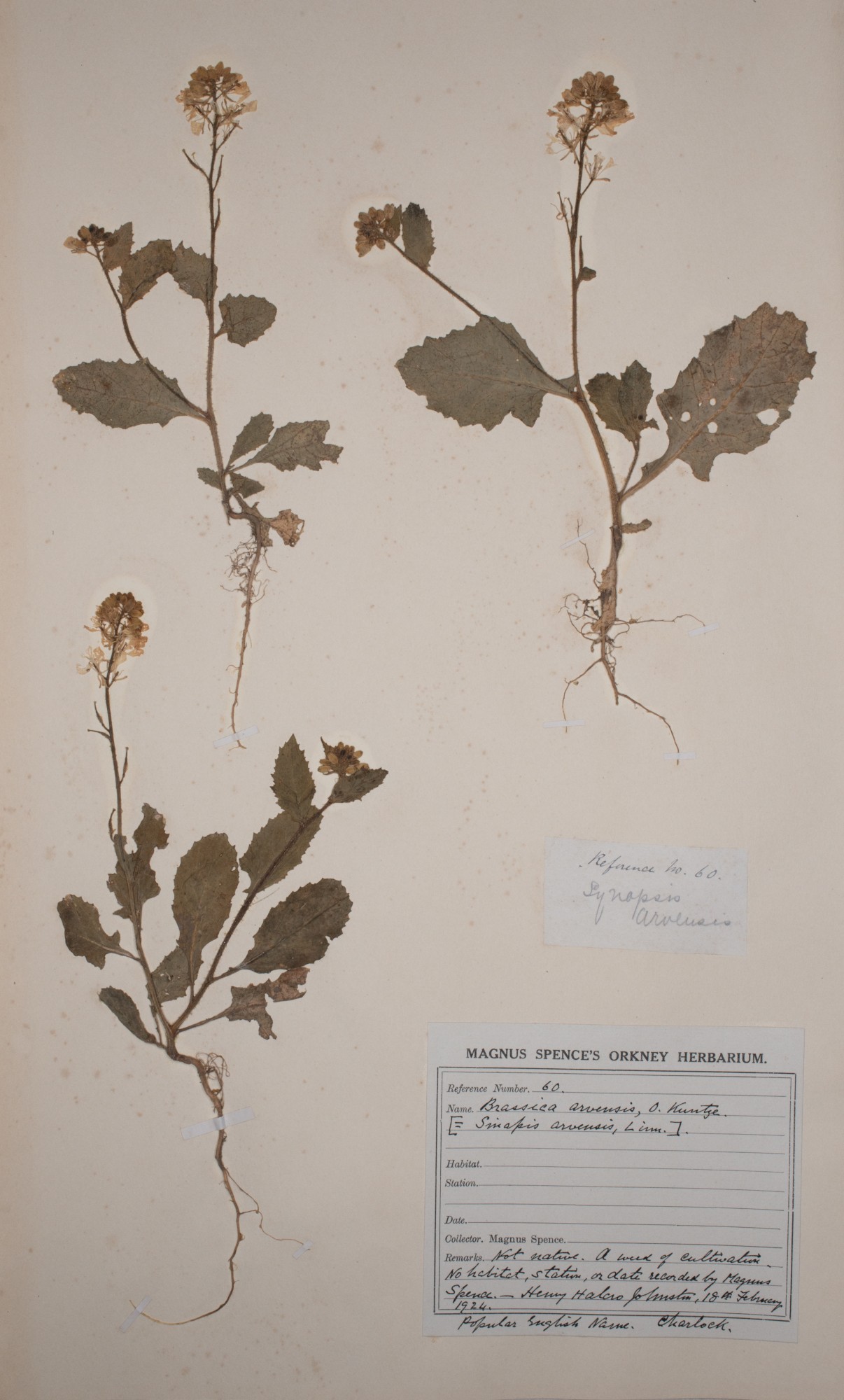 Herbarium sheet reference 60 Brassica arvensis O.Kunze Sinapis arvensis L. Charlock.