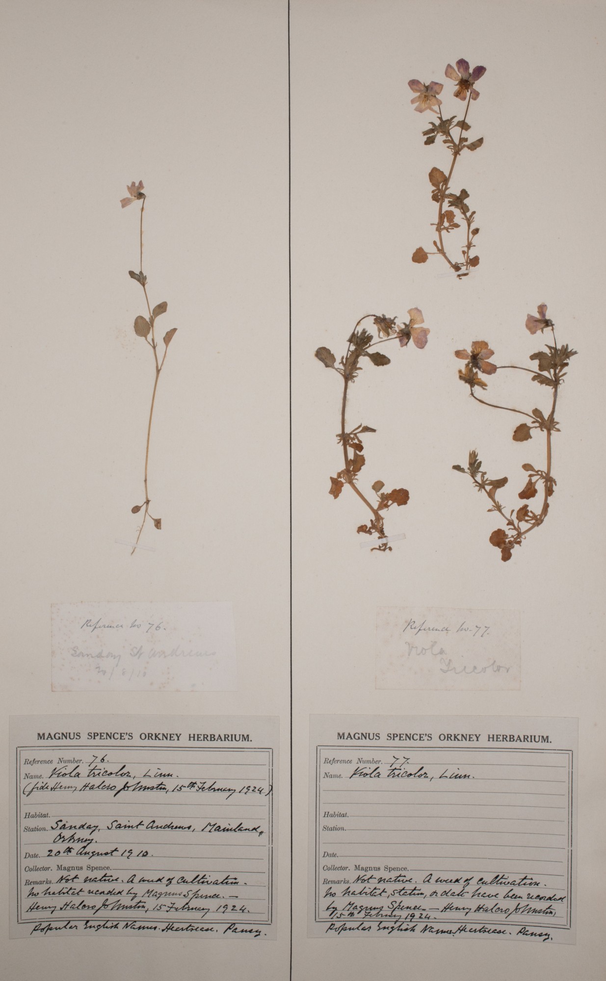 Herbarium sheet reference 76 Viola tricolor L. Viola tricolor L. Wild Pansy.