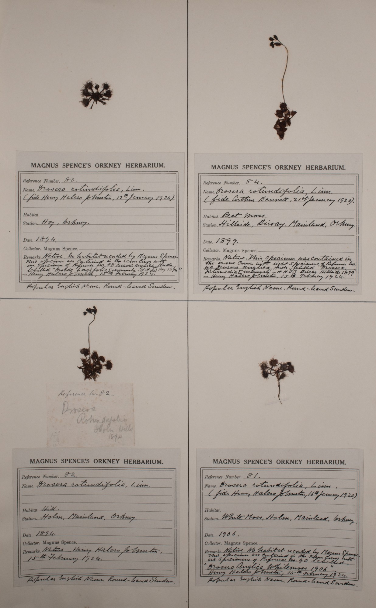Herbarium sheet reference 84 Drosera rotundifolia L. Drosera rotundifolia L. Common Sundew.