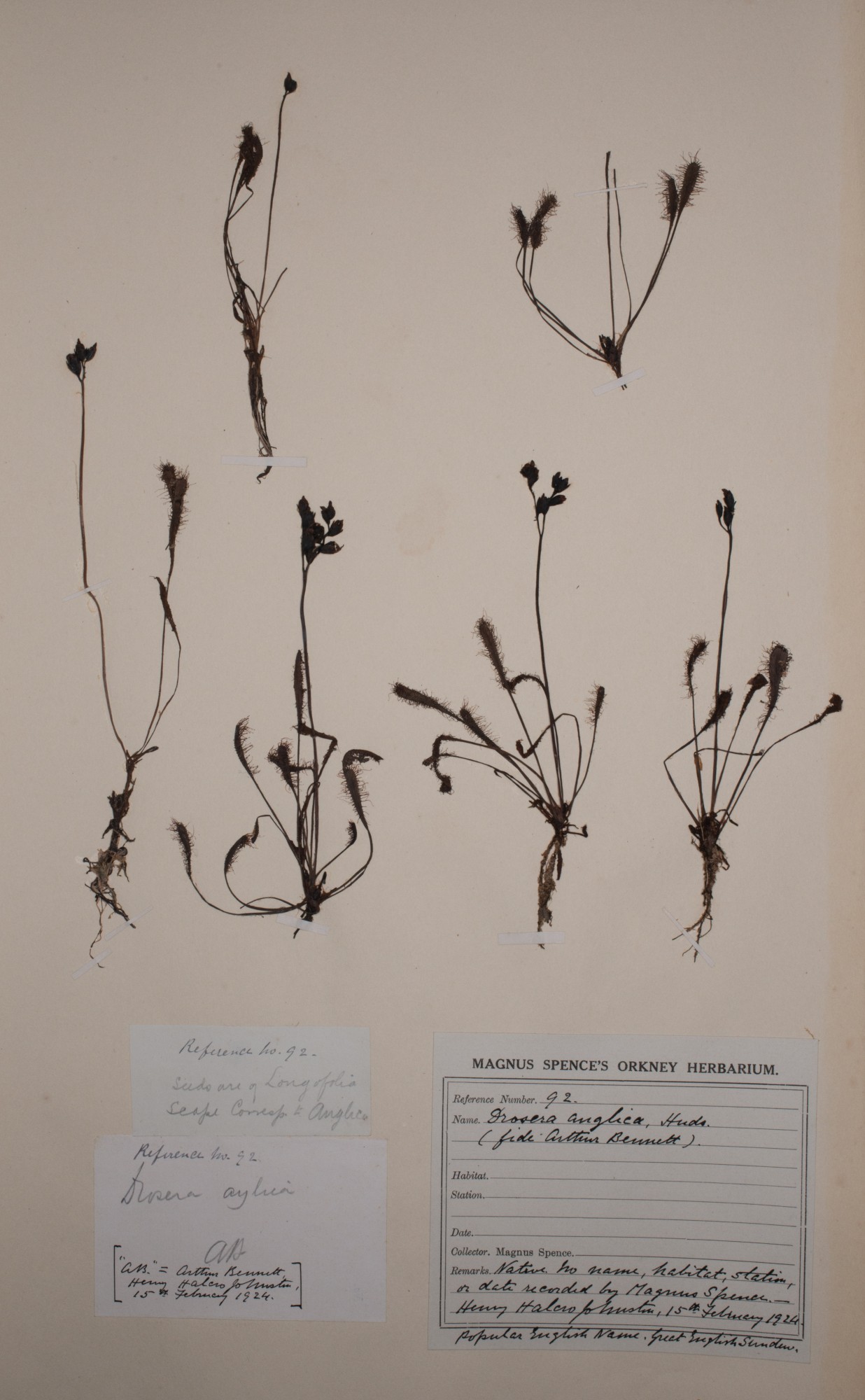 Herbarium sheet reference 92 Drosera anglica Huds. Drosera anglica Huds. Long-leaved Sundew.