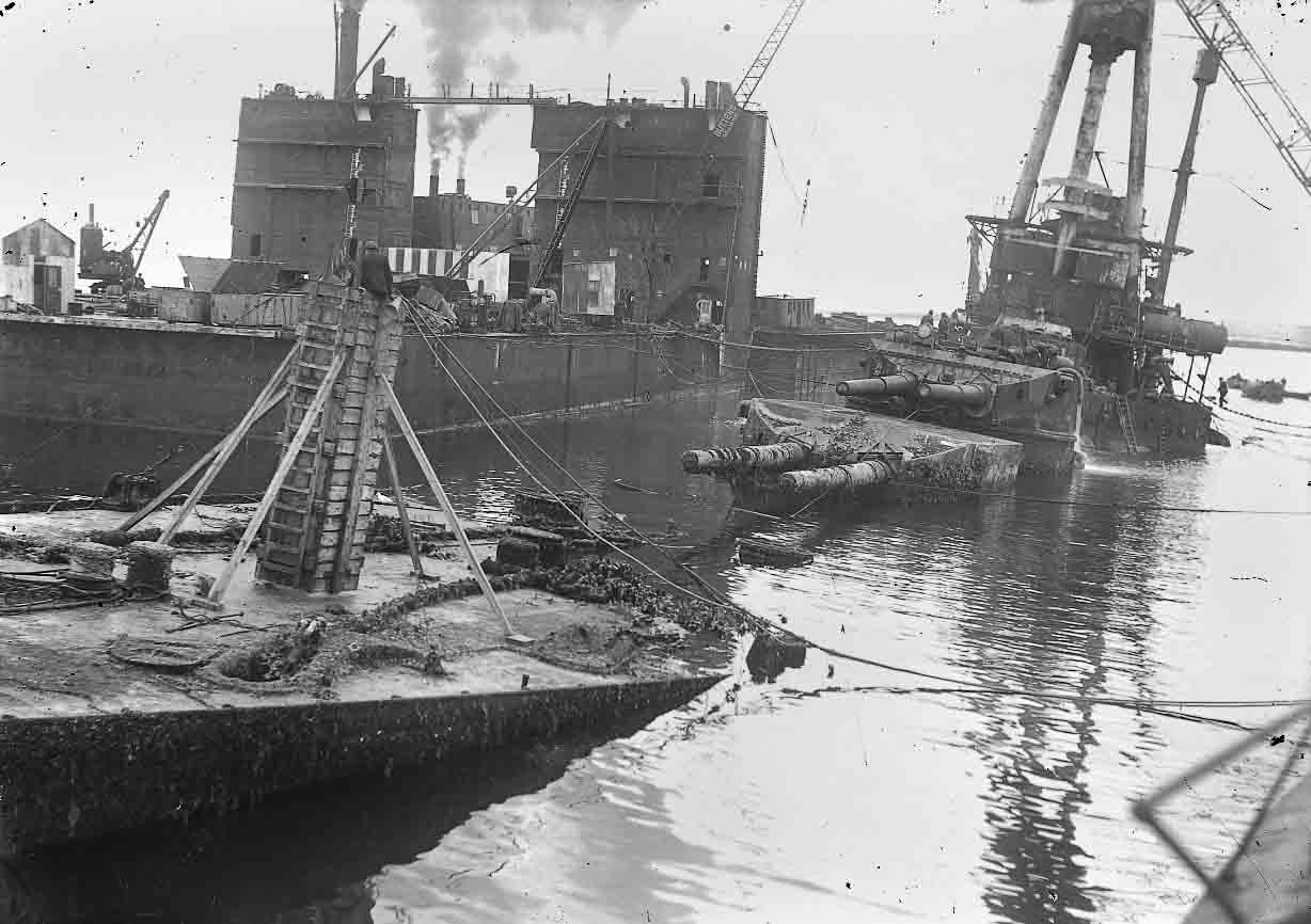 Salvage work on the scuttled SMS Hindenburg in Scapa Flow. She was refloated by Cox & Danks Ltd. on 22nd July 1930.