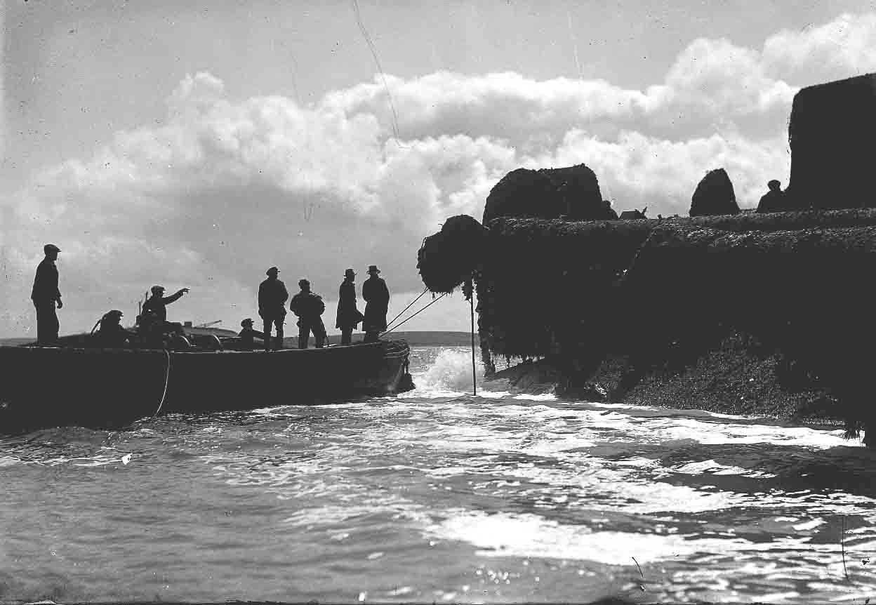 Salvage work on the scuttled German High Seas Fleet in Scapa Flow, date unknown.