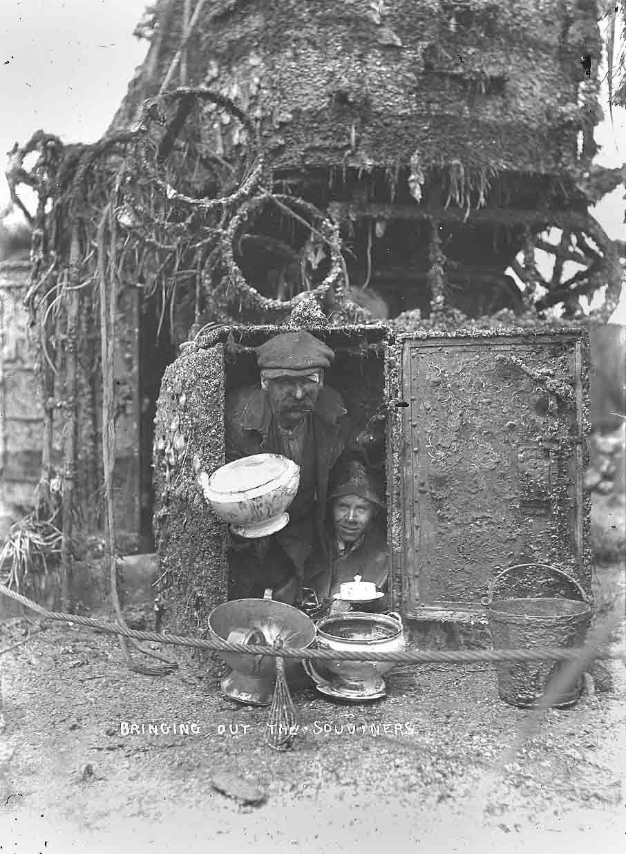 Salvage workers bringing out souvenirs from one of the salvaged German ships in Scapa Flow, date unknown.