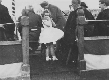 The naming ceremony for the new Longhope Lifeboat 'T.G.B.', 23rd August 1962. Jennifer Johnston, daughter of the assistant lifeboat mechanic, had presented the Hon. Mrs Ramsay with a bouquet. See Orcadian 30/8/1962, page 5.