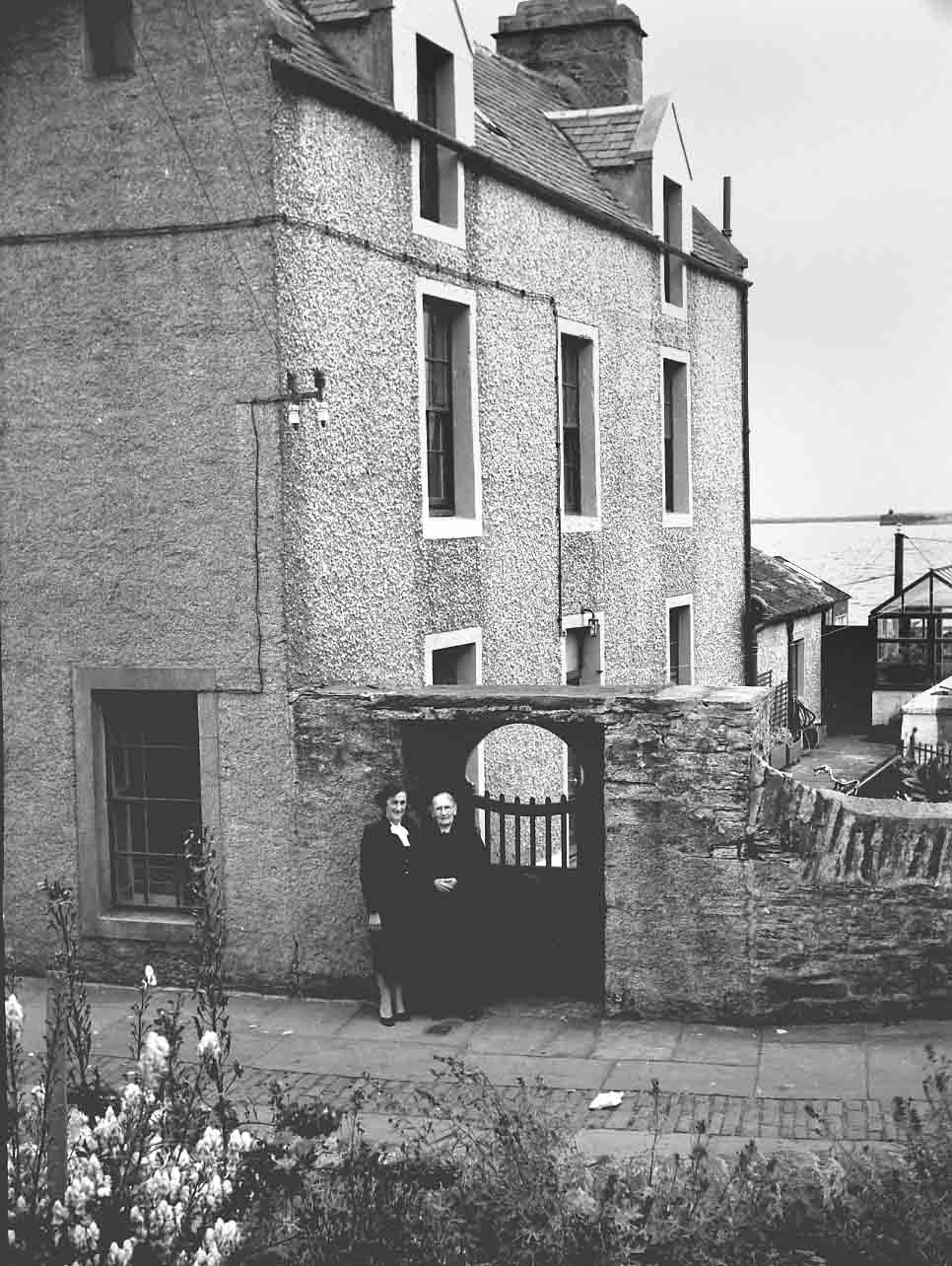 Sunnyside, Stromness, formerly Login's Inn. On the right is Mrs Smith of Alfred Street, Stromness. Date unknown.