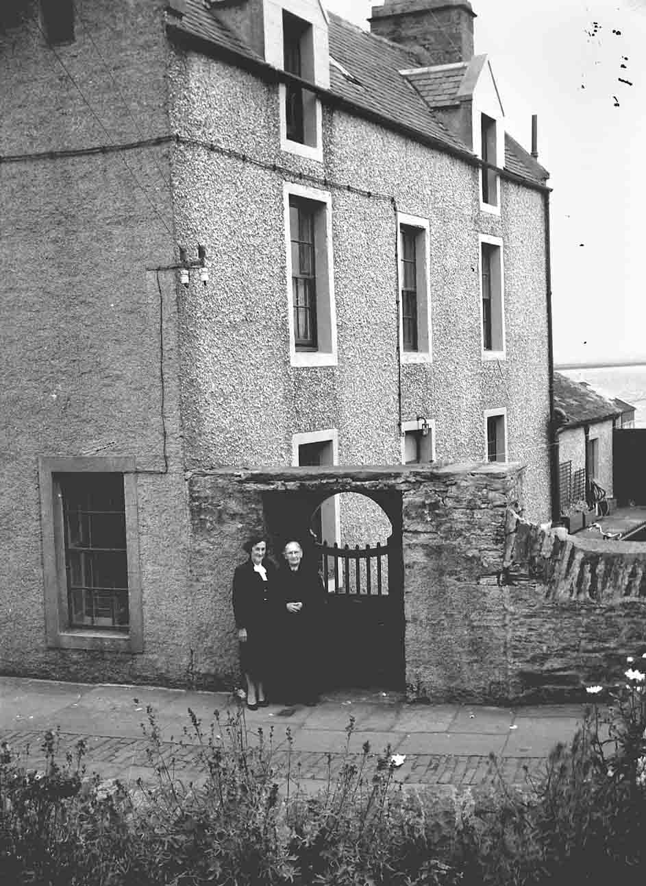 Sunnyside, Stromness, formerly Login's Inn. On the right is Mrs Smith of Alfred Street, Stromness. Date unknown.