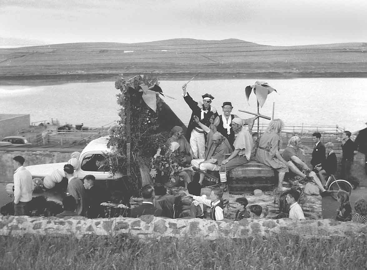 Entrants in a Stromness Shopping Week parade, 'Treasure Island', 1955.