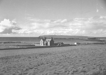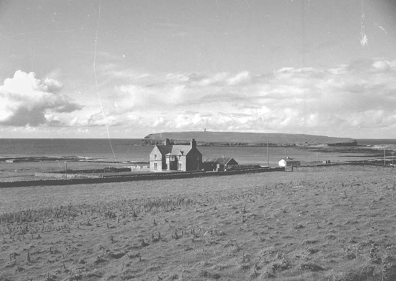 Linkshouse, Birsay, with the Brough of Birsay in the background. Date unknown.