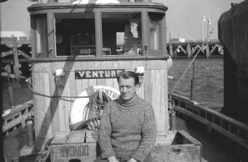 The Lobster fishing boat 'Venture' and her captain, Alfred Sinclair. He took the Kirkwall Arts Club south to Thurso so that they could compete in the SCDA finals, 1963, which they won. He was also Coxswain of the Stromness Lifeboat. See Orcadian 2/5/1963, page 5.